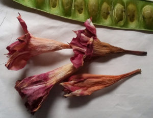 Students will be sealing dried pods, flowers, blossoms, organic objects, etc. which will be skewered onto a stick, then dipped into a watery aqua resin (much like a clay slip consistency) and left to dry between dippings. When the surface is hard it is ready to be hand-colored with paints, inks and color pencils. A final coat of clear resin varnish completes the surface. These colorful pieces can be strung together, put between beads or worn as solo jewelry.